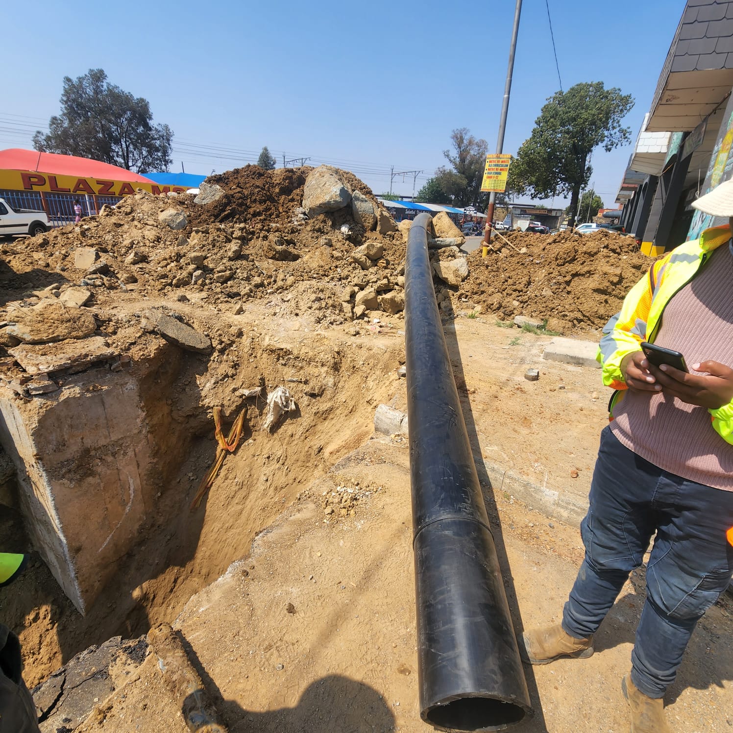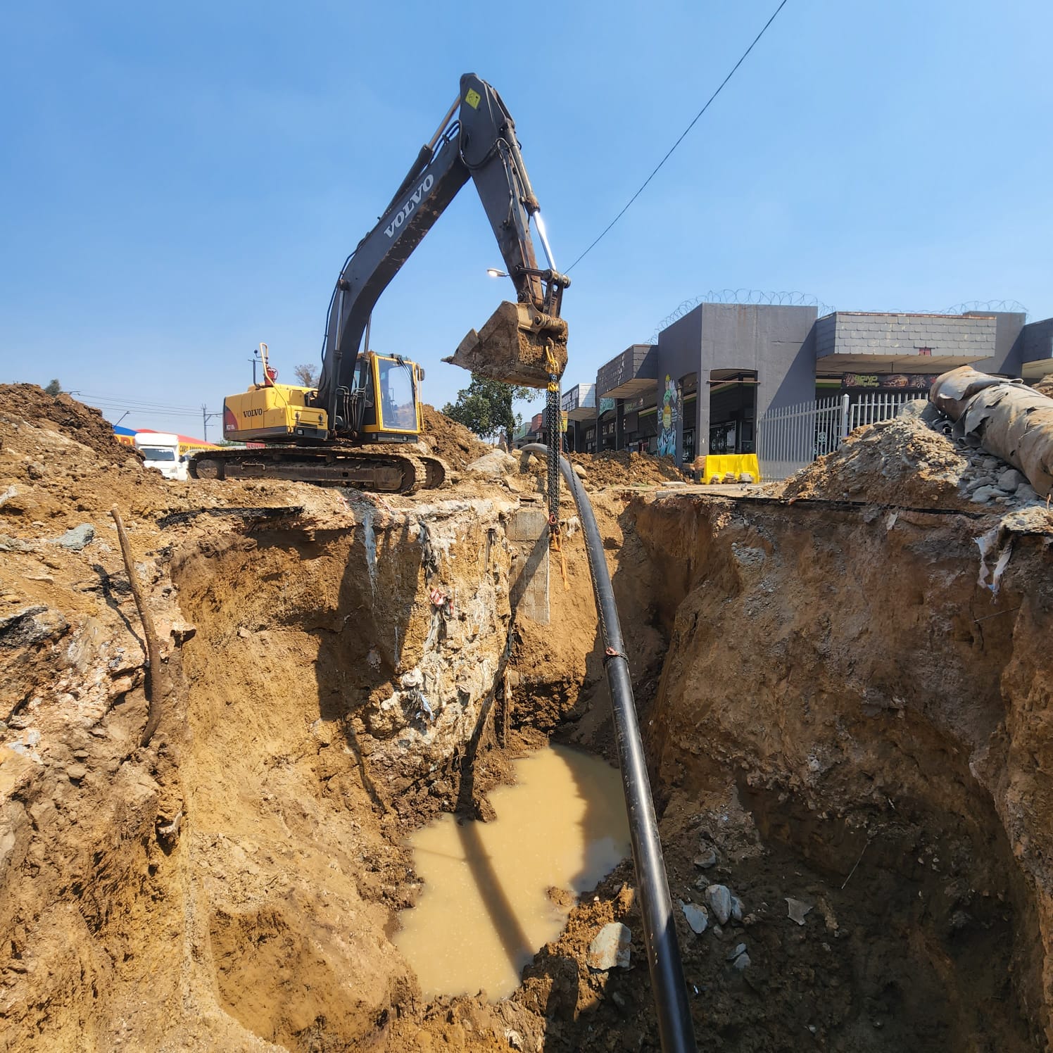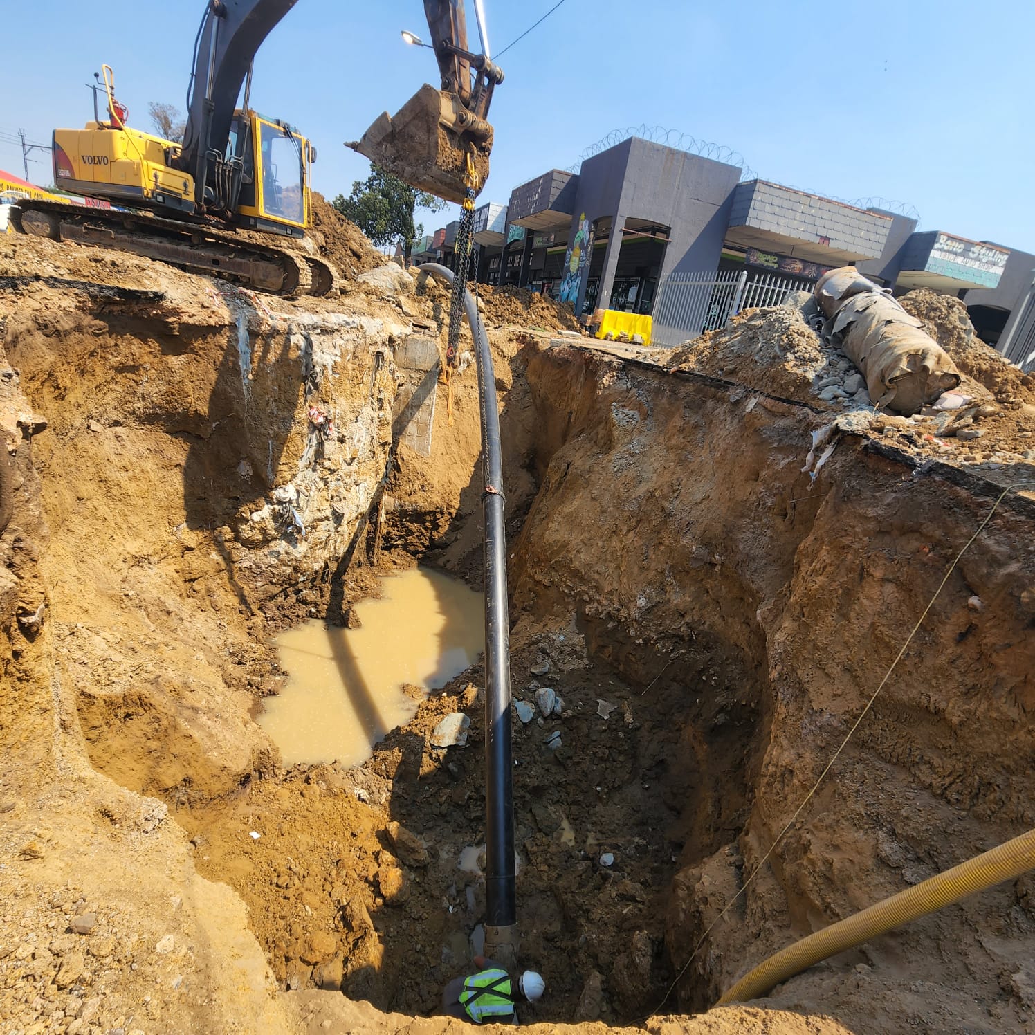 Gallery Pipe Cracking Process of a 350 Diameter HDPE Pipe Pipe Cracking Project in Standerton Pipe Cracking Project in Winniespark Pipe Cracking Project in Versveld Pipe Cracking Project in Tshepiso Pipe Cracking Project in Chestnut Street Pipe Cracking Project in Bophelong Horizontal Directional Drilling Project in Botswana Horizontal Directional Drilling DD10 Pipe cracking upsize from 160 mm to 355mm, Weltervredenpark Pipe cracking 315mm, Hillbrow